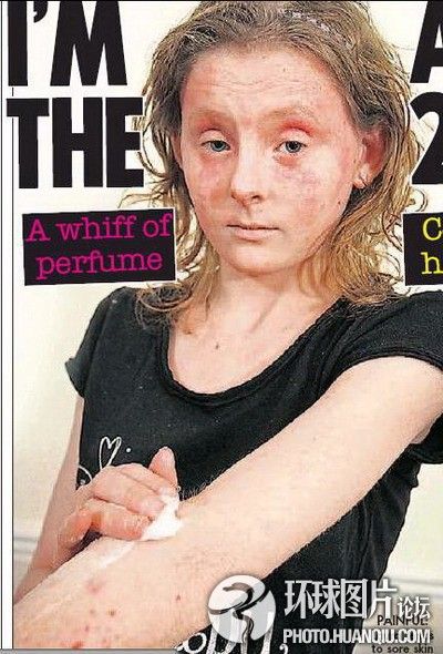 澳大利亚墨尔本市19岁少女艾什蕾·莫丽斯患有一种罕见的“水源性荨麻疹”,她的皮肤竟然对水过敏,一碰到水就会发痒起皮疹,并且还像火烧般疼痛。艾什蕾压根无法游泳,而洗澡对她来说更成了痛苦的噩梦。由于男友身上经常出汗,艾什蕾平时压根不敢和男友进行亲密拥抱。皮肤科专家罗德尼·辛克莱教授对艾什蕾进行诊断后,告诉她青霉素已经改变了她体内的组胺水平,从而使她患上了一种罕见的“水源性荨麻疹”,这一疾病很罕见,在全世界范围内也没听说过几例。 英女孩“对21世纪过敏”