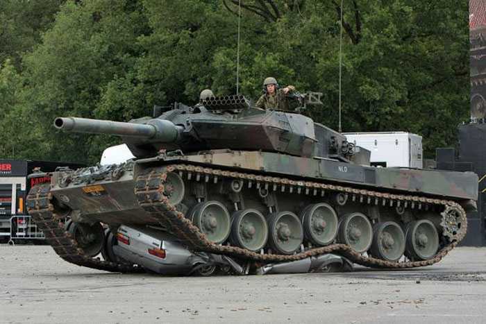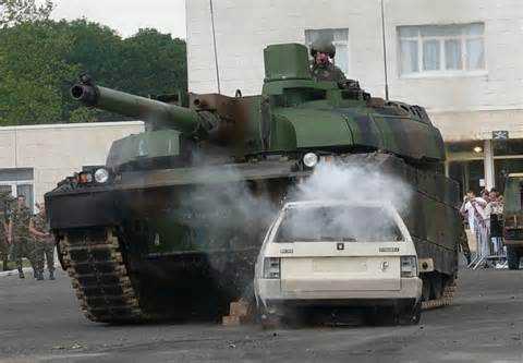对坦克大小没概念的看看坦克轻松碾压汽车的照片。
