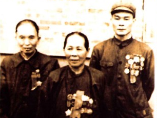 中间是黄继光母亲邓芳芝