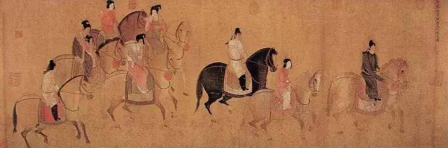▲ 《虢国夫人游春图》 张萱 唐 如此良辰美景, 怎能少了踏春郊游,宴饮宾朋的热闹场景。