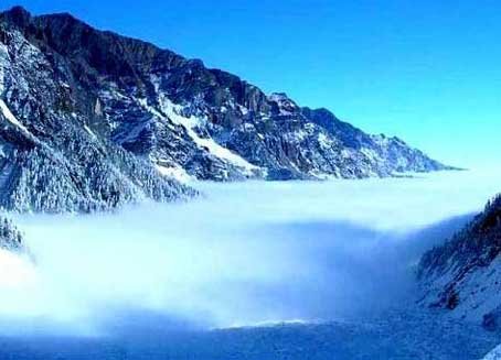 四川海螺沟 插播:四川四姑娘山、康定、海螺沟之旅 7.高原冰川奇景:四川海螺沟 海螺沟位于四川省甘孜藏族自治州泸定县贡嘎山东坡,距成都319公里。海螺沟冰川是地球上同纬度海拔最低,离城市最近的冰川。冰川的雪粒盆是整个冰川的源泉,盆内冰雪积累到一定程度,就会翻越盆沿形成巨大雪崩。故雪粒盆虽美丽、神秘,却只可远观不可靠近。盆的边缘是我国已知最大的冰瀑布:高1080米,宽500~1100米,比贵州黄果树瀑布还要大上10倍,晶莹剔透、雄奇无比。在海揽2850米地段上,长5700米的冰舌紧舔大地。冰面上分布着冰面湖、冰面河、冰裂缝、冰蘑菇、冰洞、冰桥......令人叫绝的冰川弧拱晶莹透明、蓝中透绿。 在海螺沟冰天雪地的世界里,有温泉点数十处,水温介于40度至80度不等,游人可在冰川上洗温泉浴。如果在冬天,雪花从无极的天幕中飘洒下来,还没等落地,就被蒸发的水汽蒸发弥漫。更神奇的是有一股水温高达90°C的沸泉。海螺沟总是超出人的想象。 交通贴士: 从成都出发,经新建成的成雅高速公路、二郎山隧道、大渡河大桥抵达海螺沟,全程282公里,行程约5小时,为目前进入海螺沟最便捷、路况最好的线路。