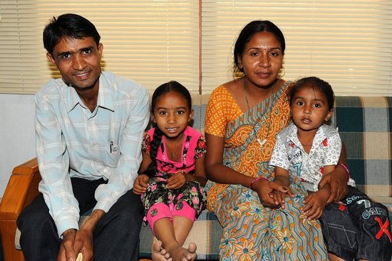 代孕者Parmar(右2)与他的丈夫及两个孩子。