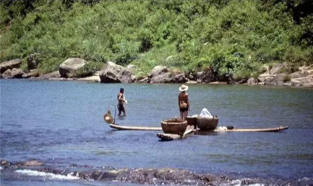 江游上的竹排。
