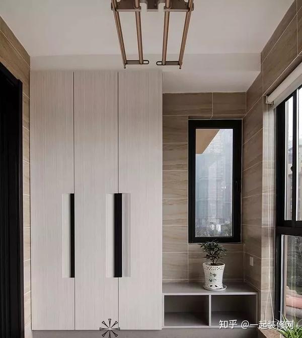 -5-阳台+衣柜 有一些朋友在阳台上安装了衣柜,这样看着很规矩又不影响美观。阳台的阳光一般都是比较充足的。阳台的柜子要注意做好防晒。阳台最好是安装上纱帘。阳光强烈的时候,适当的遮挡一下。