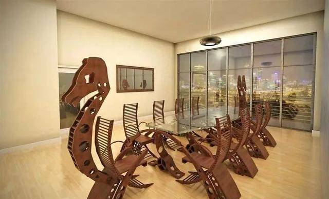 6、把办公室里的会议桌设计成维京海盗的风格,不知道在这里开会是什么样的感受。