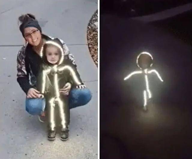 15、这几年兴起带LED灯的夜光服,让穿上衣服的小朋友瞬间成了造型可爱的火柴人。