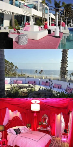 洛杉矶芭比娃娃的梦幻庄园 美国洛杉矶马里布芭比娃娃的别墅——从芭比娃娃的梦幻住宅中获得灵感的豪宅 为了庆祝芭比娃娃的50岁生日,室内设计大师乔纳森·阿德勒将一座可以俯瞰太平洋、面积为325平方米别墅装饰成芭比娃娃家的样子。芭比娃娃的卧室墙壁和屋顶都被装饰成红色,壁櫥中放着50双粉红色的鞋子,厨房中有杯型饼小蛋糕。在别墅的博物馆里,陈列着25款古典芭比娃娃的形象。而车库里还停放着一款新式的甲壳虫轿车。 阿德勒最得意的设计是在起居室,著名设计师安迪·沃霍尔创作的一副芭比娃娃画像价值高达20万美元。(Zak)