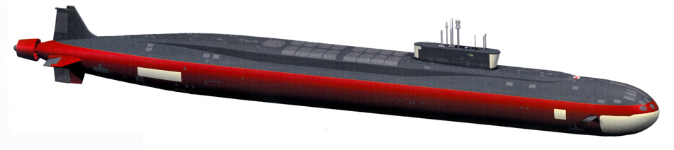 鲨鱼”级攻击型核潜艇“北风之神”级潜艇为俄罗斯第四代战略核潜艇.又称955型战略核潜艇.由圣彼得堡红宝石中央设计局设计。“尤里·多尔戈各基”号为955型核潜艇的首艇,艇长170米,宽13.5米,定员107人,排水1.7万吨,最高航速26节,下潜深度450米。