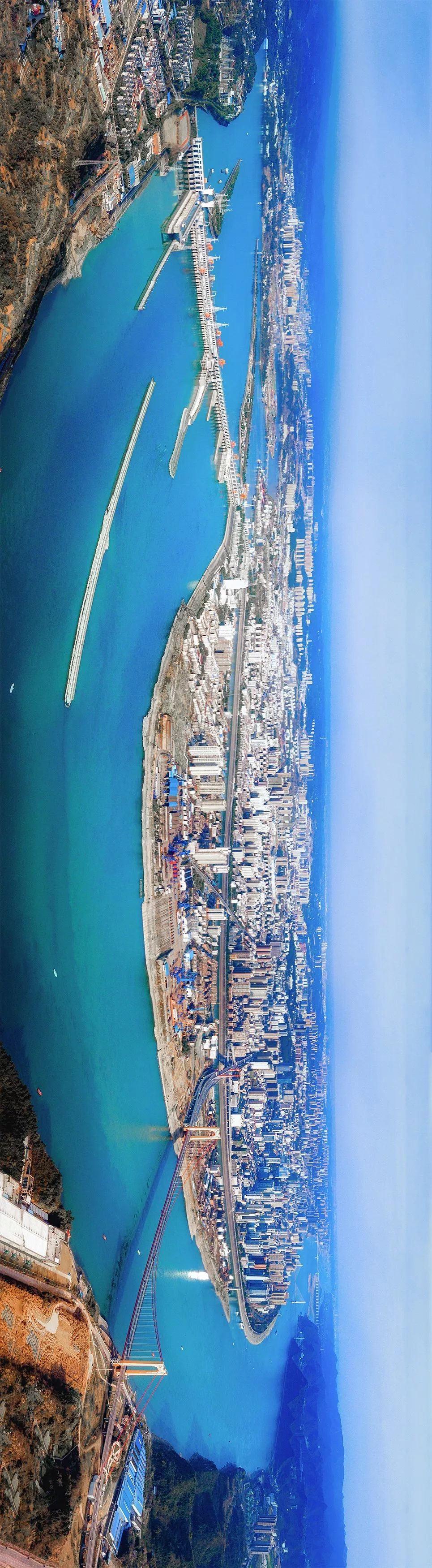 ▼葛洲坝水电站和湖北宜昌市市区