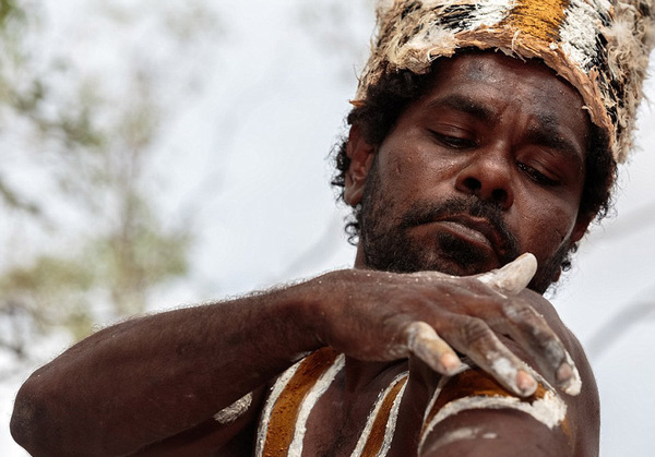 部落族人表演类似袋鼠和鸸鹋舞蹈,以唤醒他们的祖先。(网页截图)
