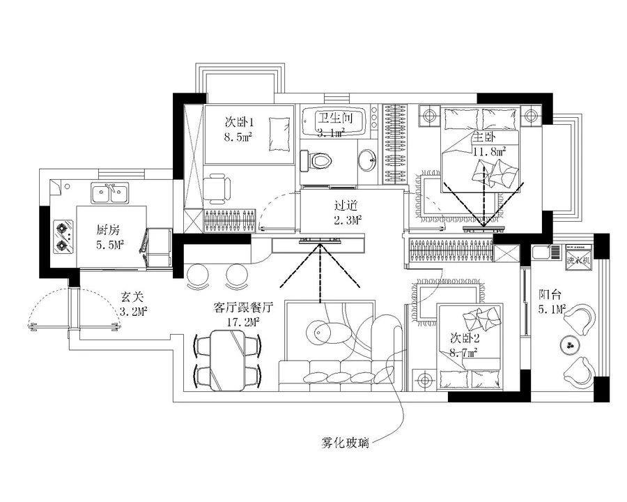 Éè¼ÆËµÃ÷£º 1¡¢½«Ô±¾¿ÍÌü»®·ÖΪ²ÍÌü£¬¿ÍÌü£¬ÎÔÊÒ... 2¡¢´ÎÎÔ2µÄÇøÓò²ÉÓÃÎí»¯²£Á§½«¿ÍÌü¸úÎÔÊÒ»®·Ö¿ªÀ´£¬ÔÚÎí»¯²£Á§µÄ×÷ÓÃÏ£¬¼ÈÂú×ã¿ÍÌüµÄ²É¹âͬʱҲ±£Ö¤ÎÔÊÒµÄ˽ÃÜÐÔ... 15 @ºúÂܲ·85 Ͷ¸å×÷Æ·