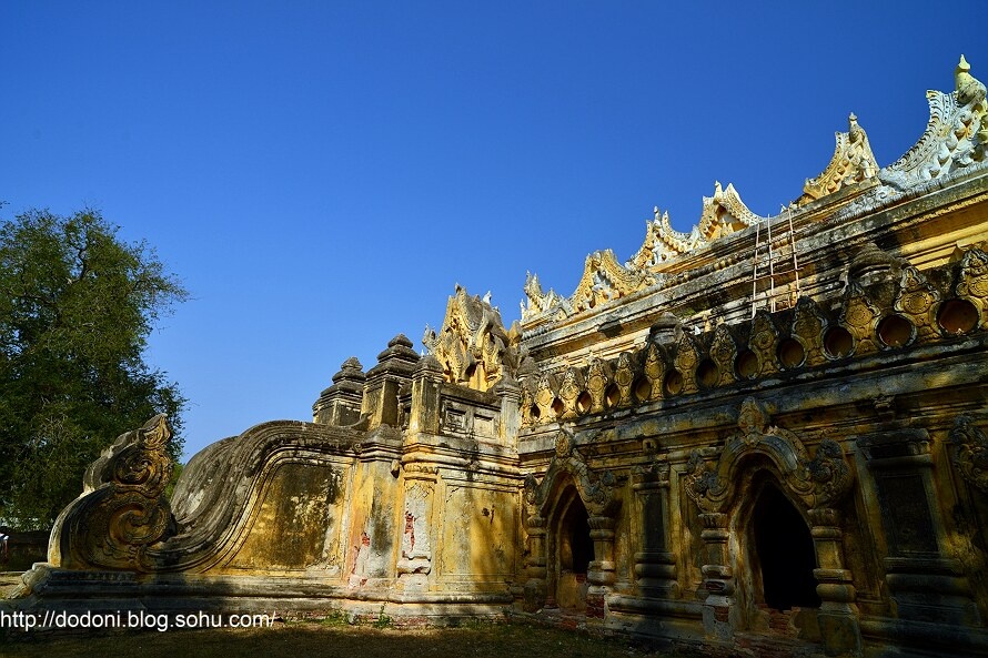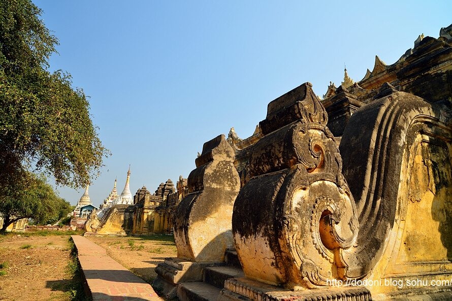 18.坐上马车,晃晃悠悠地随着滴答滴答清脆的马蹄声,还要迎着扑面而来的黄土尘埃一路回到远古社会 插播:真实的缅甸,让人陶醉的地方 19.马车在第一站马哈昂美僧院(Maha Aungmye Bonzan Monastery )附近停下 20.马夫趁着空隙,给自己的衣食父母精心照料、打理一番 21.曼德勒因瓦古城(Inwa)始建于1822年的马哈昂美僧院(Maha Aungmye Bonzan Monastery ) 22.有点小吴哥建筑风格的马哈昂美僧院(Maha Aungmye Bonzan Monastery )是因瓦古城里最美的建筑,颇有当年皇家精美宏大的建筑风范 23. 24. 25. 26.