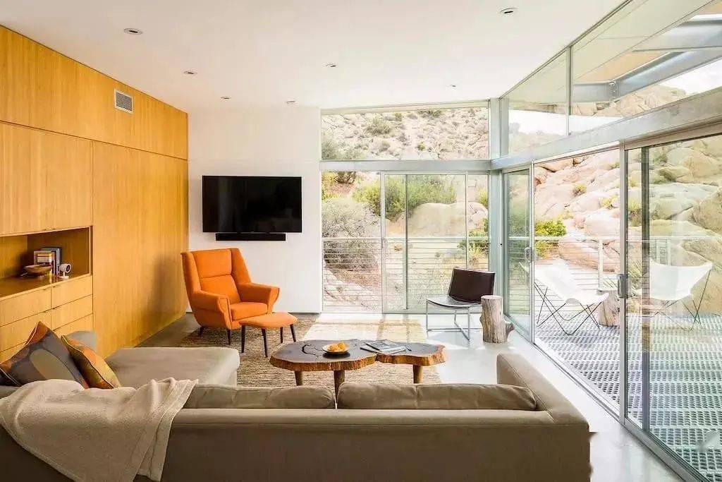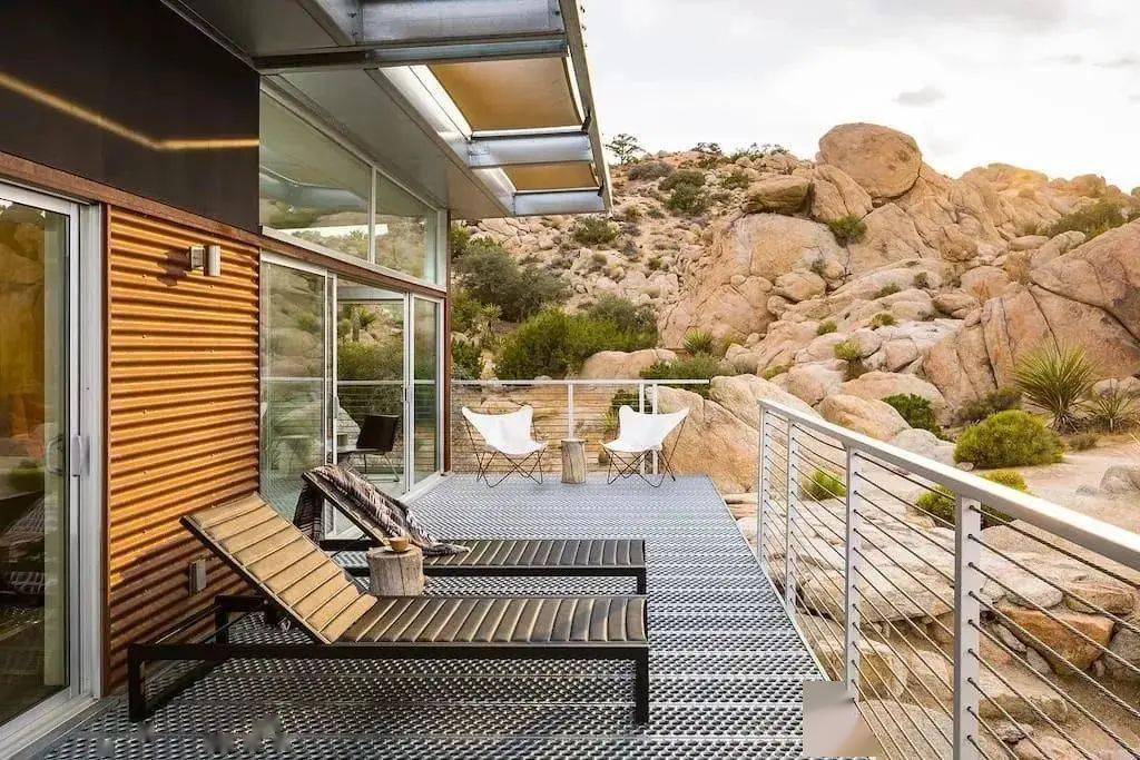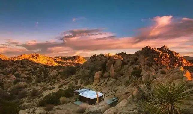 荒野中的岩石屋 在遍布风化巨石的犹卡谷地,极目远望,突然出现一座前卫“突兀”的现代纯钢结构房屋。四周被岩石、古老的杜松和橡树包围,好像一座现代飞船驻留在火星世界。想象一下在这样景致的旷野中,享受着露天按摩浴缸边仰望银河,还去火星干嘛? 插播:野奢酒店 @小狐狸389608552