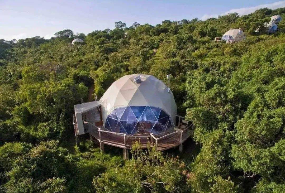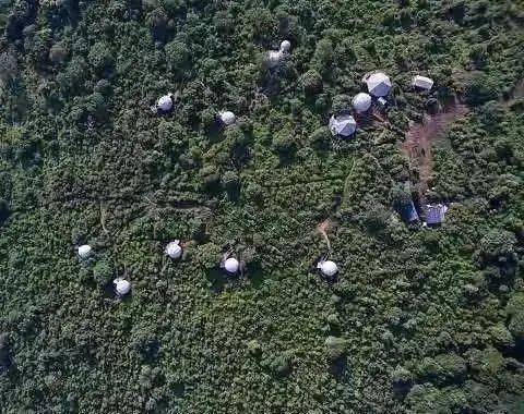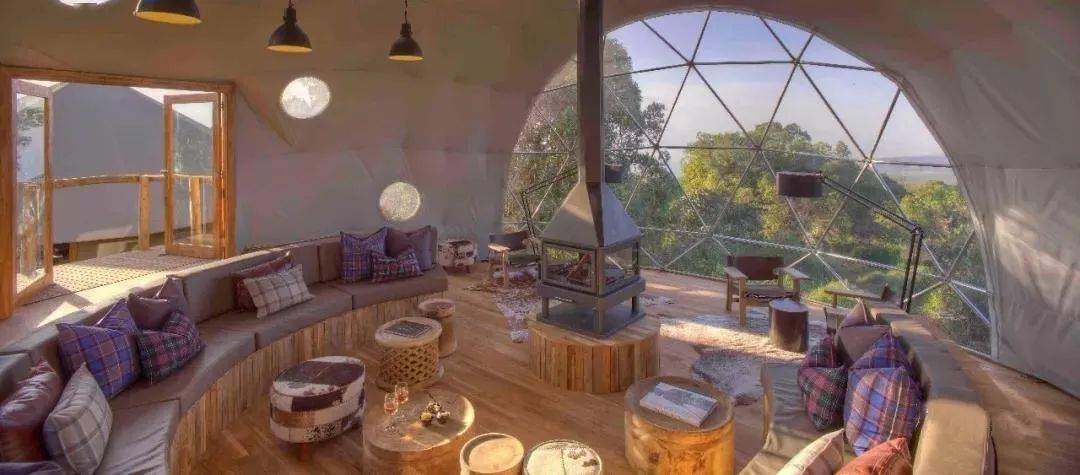The Highlands 这家形如太空扎营的独特营地位于非洲东部坦桑尼亚恩戈罗恩戈罗火山口旁,有三千米的海拔,以便宾客在此可以看到壮丽的塞伦盖蒂平原景观。Highlands 酒店的 8 座网格球顶设计的帐篷套房均建于奥莫特(Olmoti)火山的斜坡上,独特的外形构造与东非大草原有着格格不入的即视感,不仅极具私密感,更坐拥了独家优质的视野。