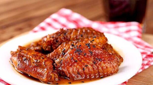 材料:鸡翅2斤 丁香15颗 八角2个 花椒10粒 桂皮1小块 香叶1片 葱3节 姜1小块 可乐1小瓶(约500ml) 清水300ml 老抽3汤匙(45ml) 盐1/2茶匙(3克) 插播:可乐鸡翅 @黑暗料理教程 做法: 1)锅中倒入水大火煮沸后,放入鸡翅焯烫2分钟后捞出。用清水洗净鸡翅表面的浮沫后,沥干备用。大葱切段,姜去皮切片。 2)锅中倒入油,大火加热至4成热时,放入丁香,八角,花椒,桂皮和香叶,煎出香味后,放入葱节和姜片爆香。 3)把鸡翅倒入锅中,翻炒1分钟后,倒入可乐和清水。再倒入老抽搅匀后,盖上盖子改成中火,焖煮20分钟。 4)打开盖子,调入盐,改成大火,煮约3分钟,待汤汁粘稠即可