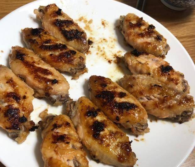材料:鸡翅6只 葱末2汤匙(30克) 姜末2汤匙(30克) 蒜末2汤匙(30克) 生抽1汤匙(15nl) 老抽1茶匙(5ml) 料酒1汤匙(15nl) 蜂蜜2茶匙(10ml) 盐1/4茶匙(1克) 烤肉酱2汤匙(30ml) 做法: 1)将鸡翅洗净后沥干,并用厨房纸巾擦干水份。把鸡翅放入容器中,用叉子在鸡翅背面扎几下,以便更好入味(图2)。 2)将生抽,老抽,料酒,蜂蜜,盐和葱姜蒜末,一起放入碗中搅拌均匀,并将鸡翅放入,腌制30分钟,或更长时间,时间越长味道越好。 3)烤盘中铺上锡纸,将鸡翅放在烤网上,在鸡翅的正反面都刷上烤肉酱,放入预热好的烤箱中层,先以200度烤约10分钟。然后取出鸡翅,再刷一层烤肉酱,继续烤10分钟即可。