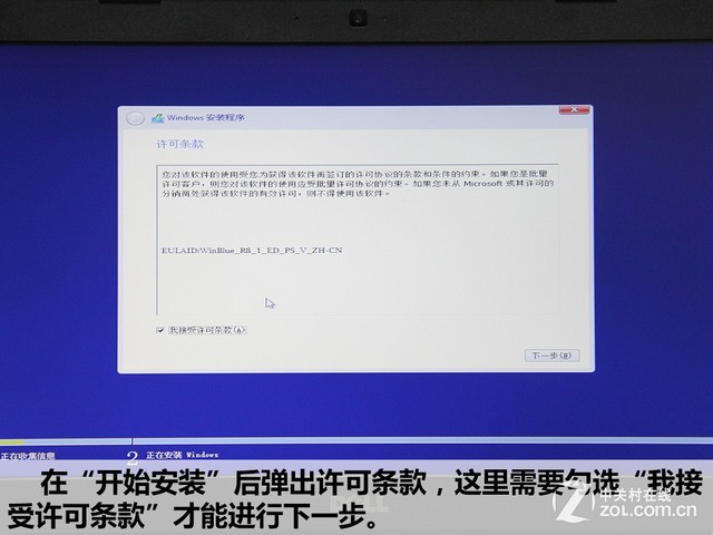 Windows安装过程 在“开始安装”后弹出许可条款,这里需要勾选“我接受许可条款”才能进行下一步。