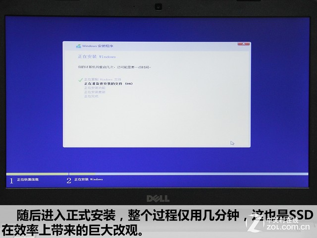 Windows安装过程 随后进入正式安装,整个过程仅用几分钟,这也是SSD在效率上带来的巨大改观。