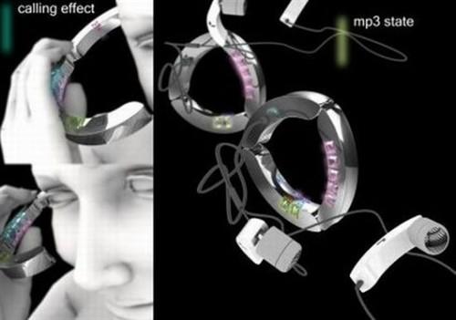 同样是Tao Ma的设计,专为女生打造的有如时尚饰品的手机。它合起来是手镯,戴在手上,也是可以听歌的mp3待机模式;打开就是通话模式。