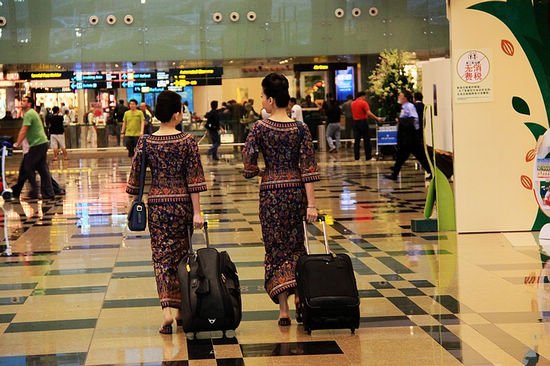 在新加坡机场候机时,正好碰见新加坡航空公司的空姐,看样子象是同一机组的人员,我紧赶几步抓拍到了她们的倩影。