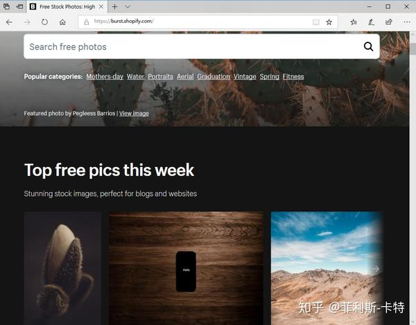 Unsplash 你可以随意的在超过50,000名贡献者的超过300,000张精美高分辨率图像挑选需要的图片。Unsplash并不像一些付费网站那样提供绝对的选择,但照片质量一流,每天都会增加数千张照片。 您可以在这个免费的库存网站上找到合适的作品。 2. Burst (by Shopify)https://burst.shopify.com/