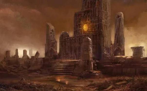 茫茫荒原中,巨大高耸的建筑;阴森晦暗
