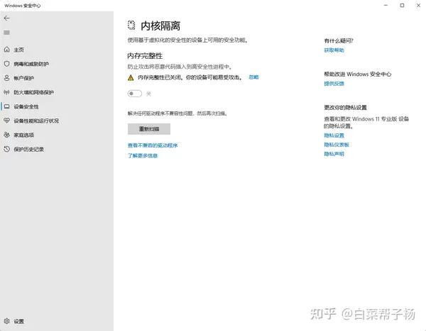 Win11内存完整性关闭、打开方法及删除驱动程序不兼容