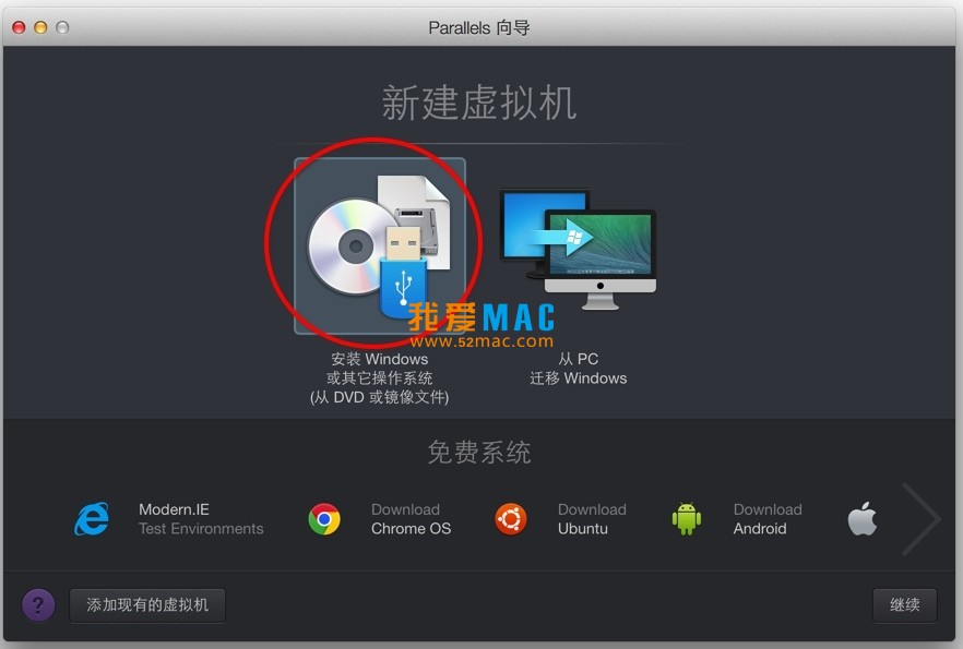 说明:Parallel Desktop 9为我们提供了3种虚拟机新建方式: