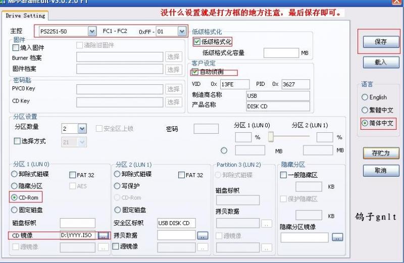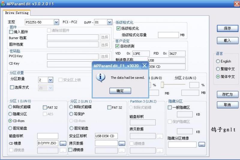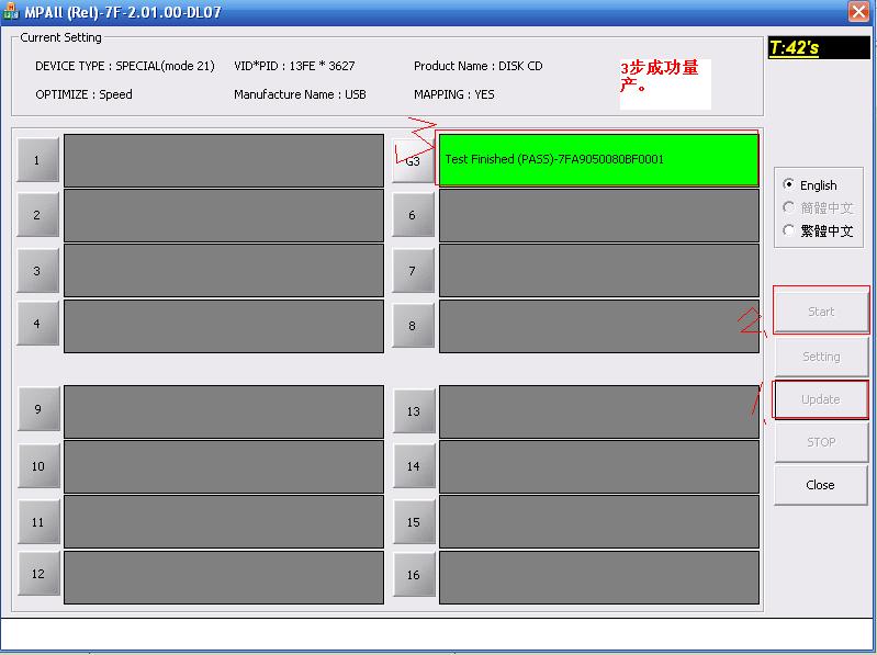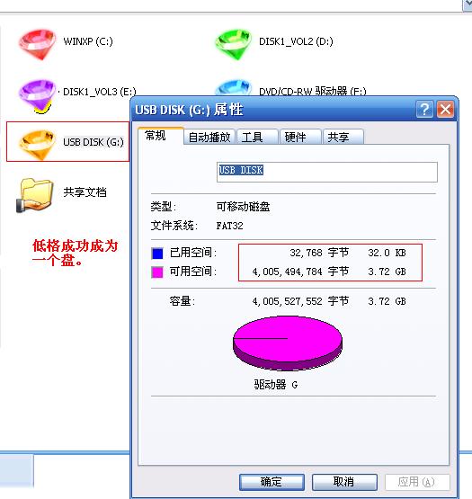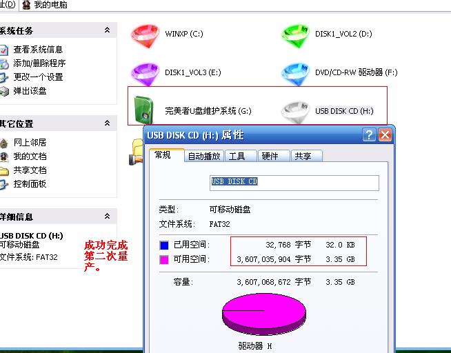 我觉得对刚才量产的系统不满意,于是我开始第二次量产: 还是用同样的软件,所不同的是先要用软件低格为一个U盘,然后才能进 行第二次量产成功。