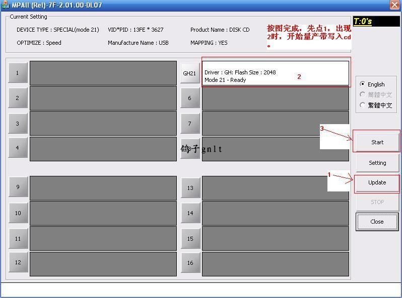 短接不成功,找下面工具重新量产【电脑的磁盘管理有显示,但打不开U盘,显示为0容量,无法格式化。】 下载U盘量产软件MPALL v2[1].01.00【本软件来自完美论坛,由xiaoqiu提供】: http://pan.baidu.com/s/1gfKyg6n https://yunpan.cn/cqKw4w8biB9ys 提取码 0cff 量产前先用包里的U盘小工具清除电脑的U盘痕迹: