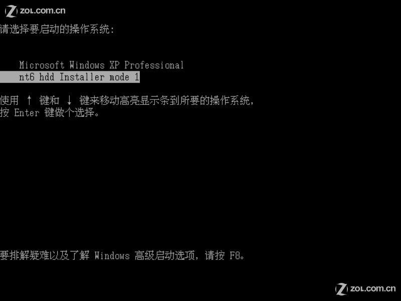 在启动过程中会出现如下界面,这时选择新出来的nt6 hdd Installer mode 1选项:
