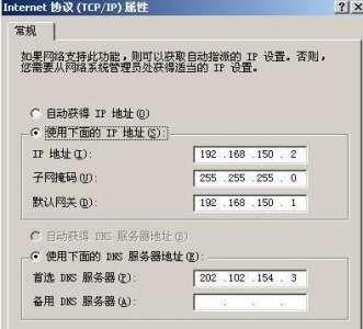 4、在虚拟机里将网卡的地址设成跟VMnet1同一个网段,网关设成VMnet1的地址,DNS根据当地情况设置(如图4)