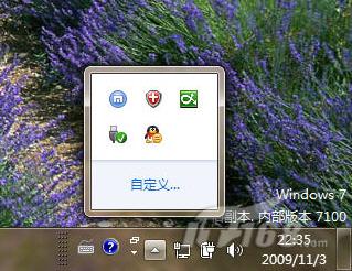 图9 自定义Windows 7的通知区域图标 在Windows 7中,我们没有再见到过去所熟悉的“显示桌面”按钮,因为它已“进化”成Windows 7任务栏最右侧的那一小块半透明的区域。对于“进化”一词来描述,七仔觉得最合适不过了:它的作用不仅仅是点击后即可显示桌面、最小化所有窗口,而且当鼠标移动到上面后,我们即可透视桌面上的所有东西,查看桌面的情况,而鼠标离开后即恢复原状。