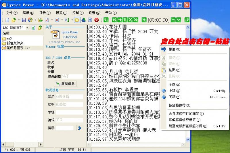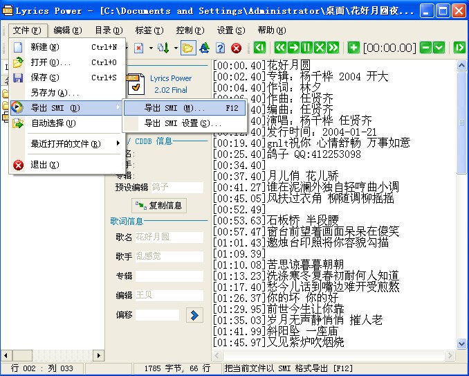 网上下载的.lrc后缀歌词转换为Windows Media Player 11支持的后缀为.smi格式的歌词: