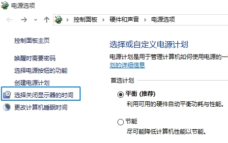 选择关闭显示器的时间或者更改计算机睡眠时间: