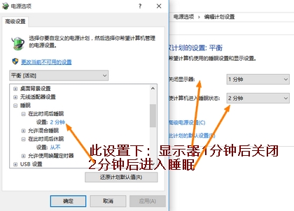 如下设置:将出现2分钟后进入睡眠,也就是电脑无法远程连接。 如果都设置为显示器1分钟后关闭,1分钟后进入睡眠,那么电脑将1分钟后被关机。
