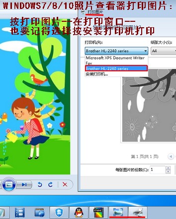 2、用WINDOWS7/8/10系统的照片查看器打印图片,这是也需要选择自己电脑安装的打印机打印图片。如图: