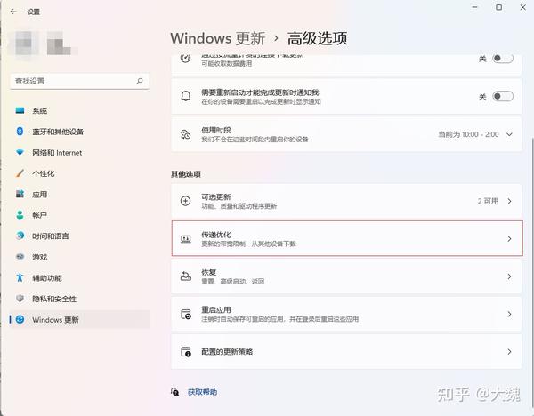 第四步:关闭传递优化 打开[设置]-[Window 更新]-[高级选项]