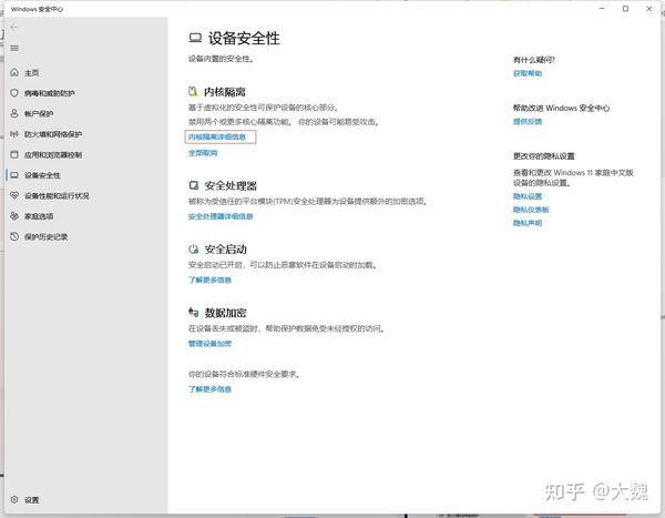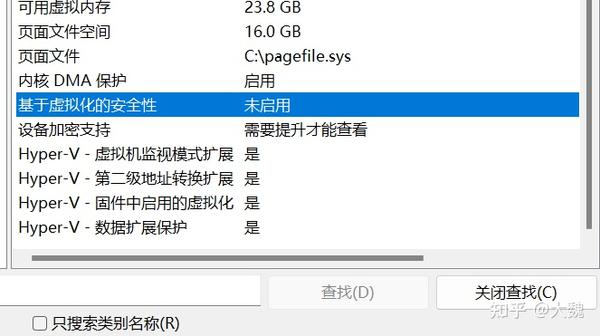 下拉菜单中‘基于虚拟化的安全性显示’如果显示‘正在运行’表明已开启VBS