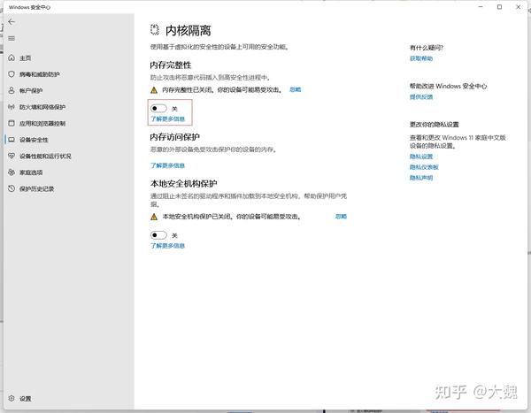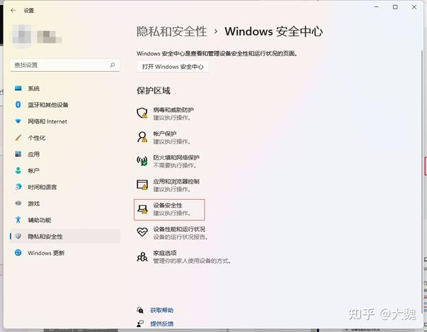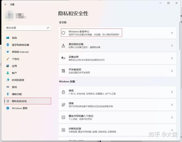 关闭内存完整性(HVCI) 打开设置,选择【隐私和安全性】- 【Windows 安全中心】