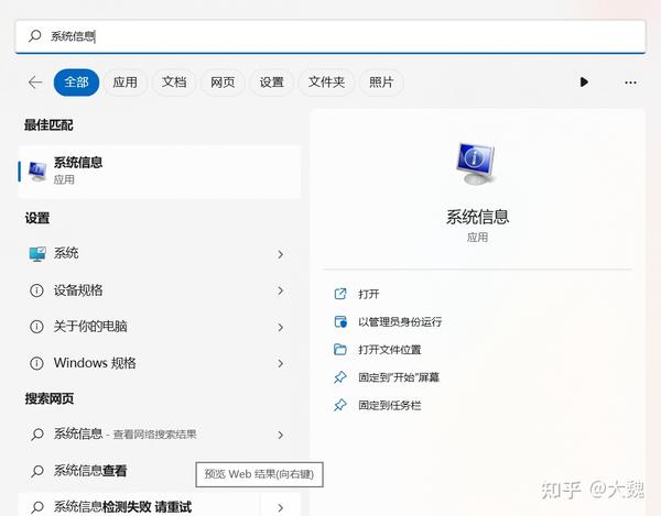 全新的Win11有它的独到之处:更为圆润的UI设计,更便捷的文件资源管理,更生动的任务管理器,更多人性化的功能(或许实在是太多了)等等新系统或许真的功能太多,藏得太深,让人摸不着头脑找不到门路,但如果耐心的进行一番优化调教,Win11也确实算是个好系统!(起码我用了1年多没出过大问题,除了有时候复制粘贴的时候要迟疑一秒钟) 插播:win10优化设置技巧教程 在开始菜单搜索并打开【系统信息】