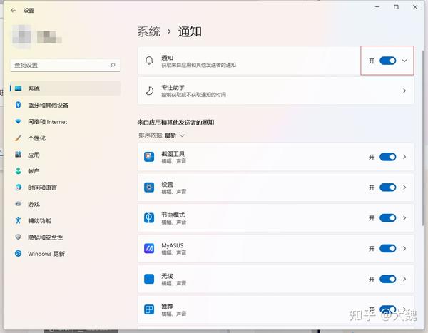 第三步:关闭系统通知 打开[设置],左侧搜索[通知和操作]