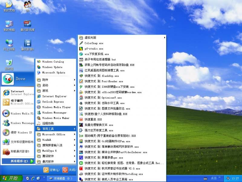 使用方法:在windows下,下载后解压到除系统盘(如:C盘)以外的其他盘根目录,运行OneKey.exe,按照提示安装即可。 适用:新旧电脑、笔记本等,特别是适用新电脑。也可以自己制作光盘安装,制作光盘需要下载或者制作一个启动菜单等然后把winxpsp3.gho放入,刻录成DVD光盘。 用微软黄金winxp sp3定制版制作,只做适当优化,尽量保留原汁原味,安装即可联网升级,补丁到2014年4月份前。进入桌面会选择安装或者选择不安装软件,如果保持默认会自动安装软件。之前系统较纯净,软件有office2003 五合一版。QQ 2013绿色纯净版,暴风影音官方正式版,RAR5.0,其他flash播放器等组件升级到最新,集成word试卷王,公式编辑器,集成几十种常用字体,保留原有所有字体等适合教育工作者用。 全程自动安装:ghostxp装机版
