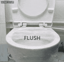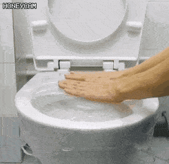 然后按下马桶冲水的按钮,等到保鲜膜慢慢鼓出一定的高度后,用手轻轻的往下压平。