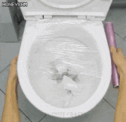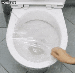 11疏通马桶 马桶堵住了,先别急着找人修理。将保鲜膜完全盖住马桶,并贴紧边缘。
