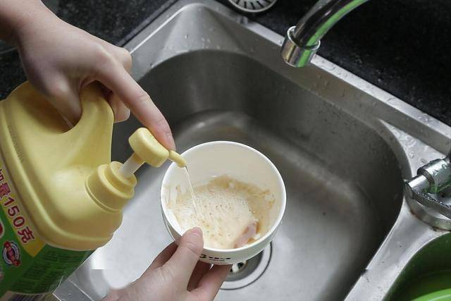 可是,就这过于日常的洗洁精,在使用上也得注意。 现在让你来用洗洁精洗个碗,你会直接摁一泵洗洁精到碗里涂抹着洗,还是会稀释过洗洁精后蘸取着水洗? 正确的做法是蘸着稀释过后的洗洁精水洗。