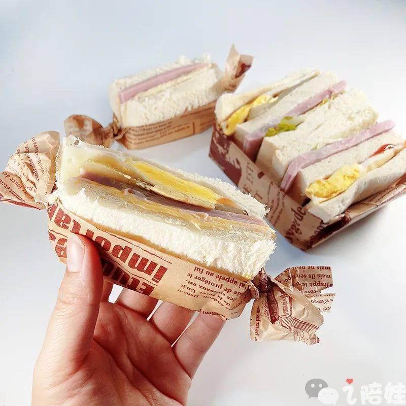 也可以这样包三明治,不光拿着吃不脏手,而且给孩子换个花样儿,他们立马就吃得更香了。