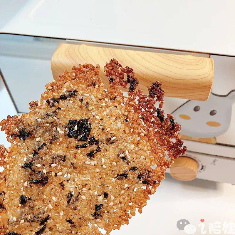 后来我又用同样的方法,给芊芊烤了海苔大米锅巴,也不赖。
