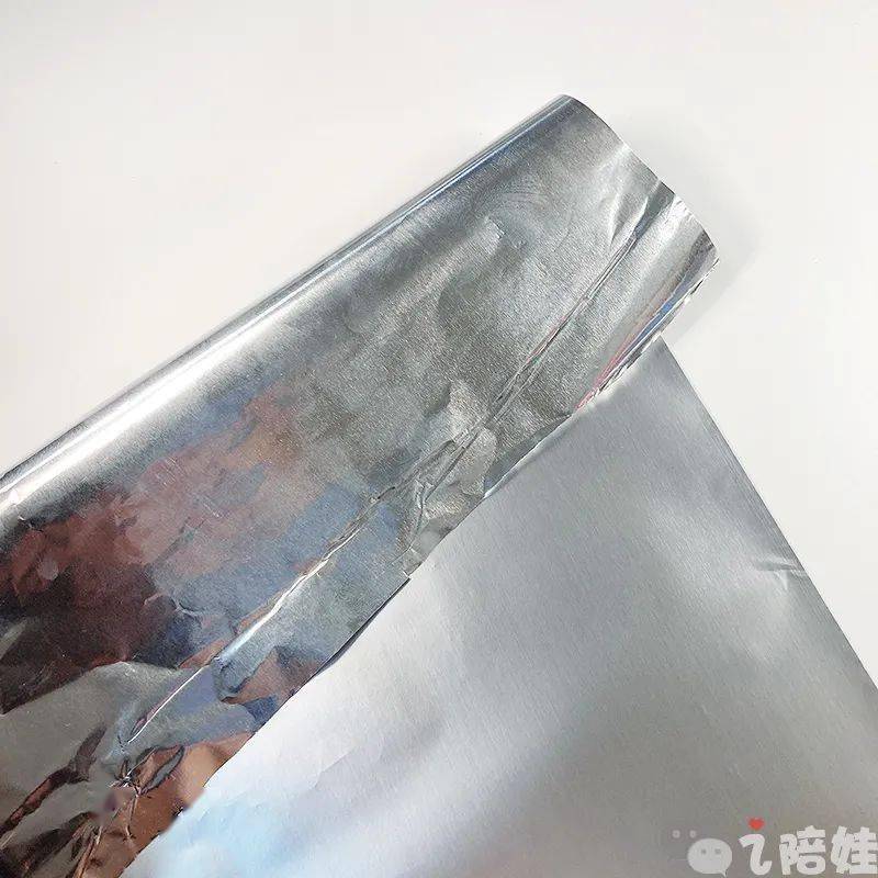 锡纸有正反两面,亮面反射雾面吸收,一般是把亮面向外、雾面贴着食物(记住口诀“食物食雾”就不会搞错啦)。