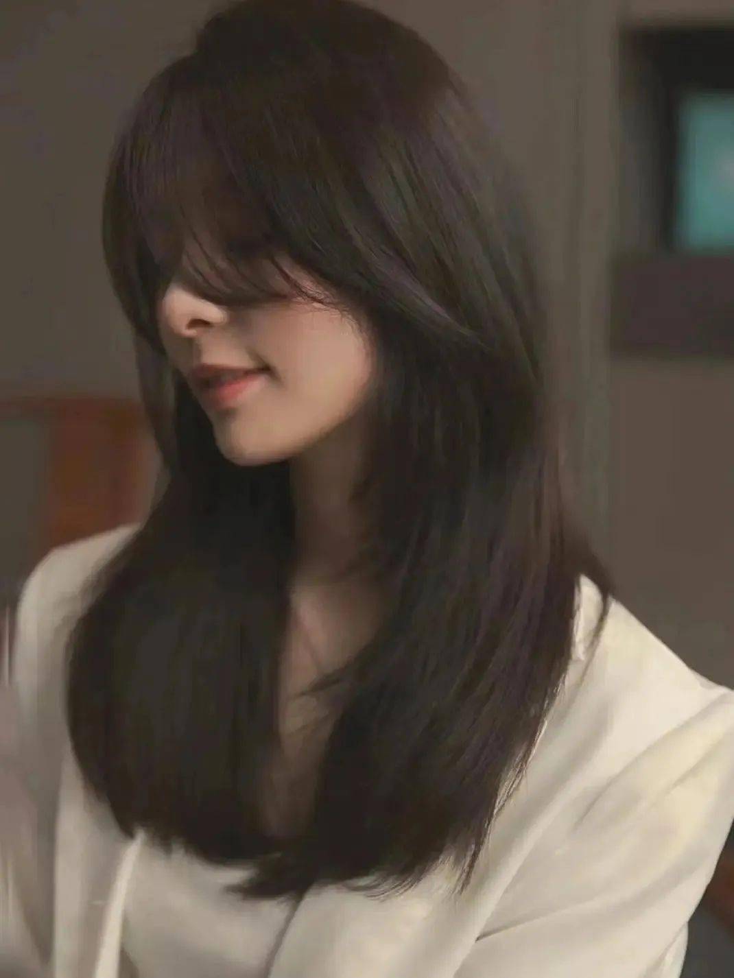 发尾有细微的卷曲,可以使整个发型看起来更加柔和自然,还有适当的层次使发型更加立体且具有与众不同的“初恋女友感”。